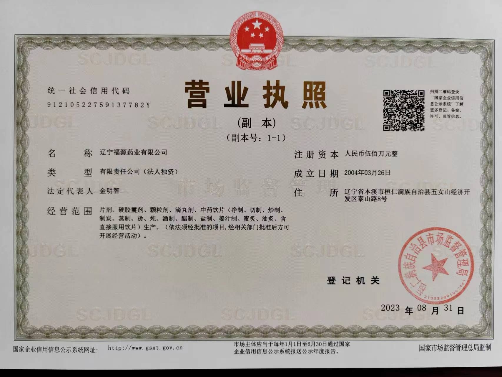 5、 地址:辽宁省本溪市桓仁满族自治县五女山经济开发区泰山路8号